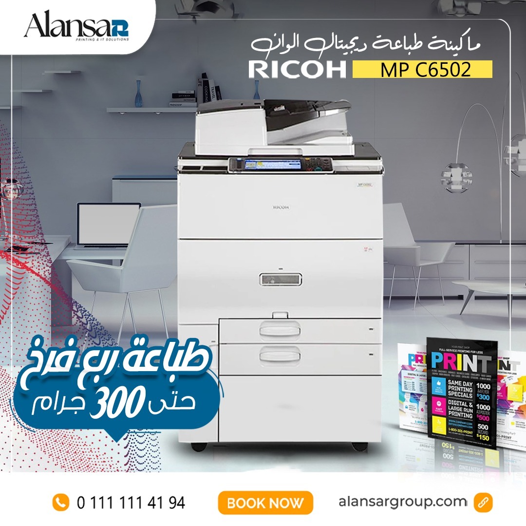 تعتبر شركة الأنصار جروب الخيار المثالي لتوفير طابعة Ricoh MP C6502. نحن نضمن لك الحصول على ماكينة طباعة عالية الجودة مع تقديم الدعم الفني الممتاز. تقدم الشركة أيضًا قطع الغيار والأحبار اللازمة، مما يساعدك في الحفاظ على كفاءة الطابعة وتوسيع نطاق عملك.